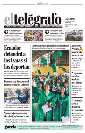 El telégrafo, Ecuador, 23 de febrero de 2019