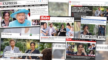 La entrevista se emitió el domingo en la CBS en horario de máxima audiencia en Estados Unidos y a la 1 de la madrugada, hora local del Reino Unido. Por ello, los periódicos impresos no incluyeron el contenido en sus ediciones del lunes, pero el Daily Mail sí publicó un número especial. “Meghan acusa al Palacio de racismo”, titularon.
