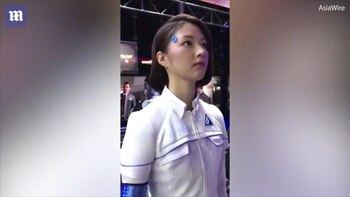 En el video, la robot de la discordia sonríe y saluda hasta dejar estupefactos a los visitantes.