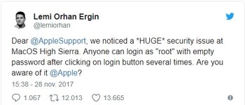 Se identificó una grave falla en la última versión de macOS High Sierra, que permitiría a cualquier persona ingresar al sistema operativo de Apple como usuario root y, por ende, tener acceso ilimitado a todo lo que se encuentre en la computadora.