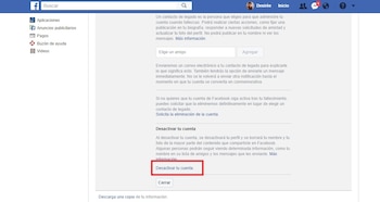 Para eliminar definitivamente la cuenta hay que enviarle una solicitud a Facebook, ingresando aquí. Antes de hacerlo, se sugiere descargar una copia de toda la información del usuario de este modo: