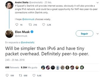 Según explicó Elon Musk a través de su cuenta de Twitter hace poco más de un mes, el sistema será P2P, una red peer-to-peer. Esto es una red entre iguales o entre pares, donde algunos aspectos funcionan a través de una serie de nodos que actúan simultáneamente como clientes y servidores respecto a los demás nodos de la red. Esto facilita el intercambio directo de información, en cualquier formato, entre los equipos interconectados. Esto permitiría que la red sea más eficiente.