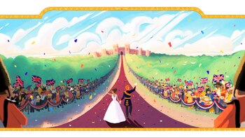 Google decidió homenajear a la pareja en su día, con un colorido doodle. La imagen a cargo del ilustrador de San Francisco, Vrinda V Zaveri, donde se los ve a los novios saludando a los miles de fanáticos seguido de una desfile oficial.