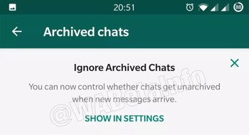 Hasta ahora, aunque archives un chat, si recibes un mensaje, te será notificado. Además, esa conversación de desarchiva de manera automática, apareciendo en tu listado de chats.