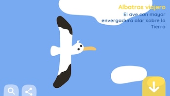 El primer protagonista del doodle es un albatros errante, el ave con la envergadura más amplia del mundo. Una especie que puede recorrer cientos de kilómetros planeando, sin aletear.