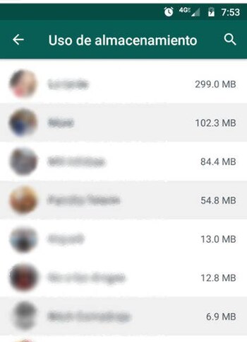 WhatsApp tiene un apartado donde puedes conocer con qué contactos compartes más datos, a partir de la cantidad de MB utilizados en la memoria de tu teléfono.