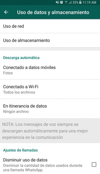 De todos modos, también es posible eliminar todas las descargas que se hagan al celular, tanto desde este servicio de mensajería como de otro modo, ingresando a la configuración general del móvil.