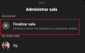 2. Solo la persona que creó la sala puede finalizarla, bloquearla o eliminar a los participantes de la sala.