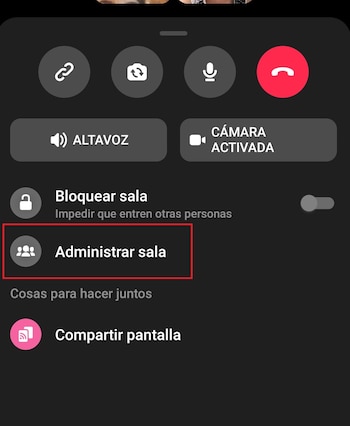 Desde el celular, deslizar el dedo hacia arriba y se verán diferentes opciones. Una de ellas es “Administrar sala”. Presionar allí: