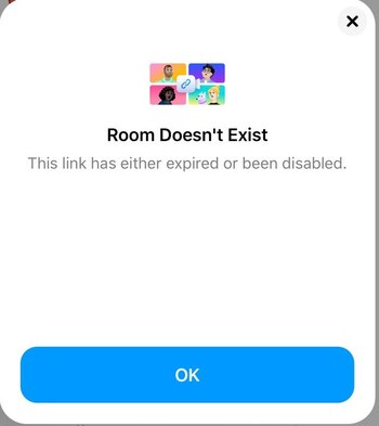 De este modo se da por finalizada la sala y el enlace de invitación enviado ya no servirá, porque quien quiera usarlo recibirá una notificación que dirá que la sala expiró o que ya se desactivó, tal como se ve a continuación.