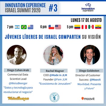 La cumbre virtual y gratuita, Israel Summit 2020, se realizó ayer por tercera vez en el año, con tres jóvenes líderes del ecosistema innovador y emprendedor israelí. Durante una hora, disertaron sobre movilidad, autos autónomos, datos (y data science), formas de trabajar y cómo Jerusalén crece exponencialmente como ecosistema emprendedor. Las charlas ya están subidas al canal de YouTube de Innovation Experience, organizador del evento.