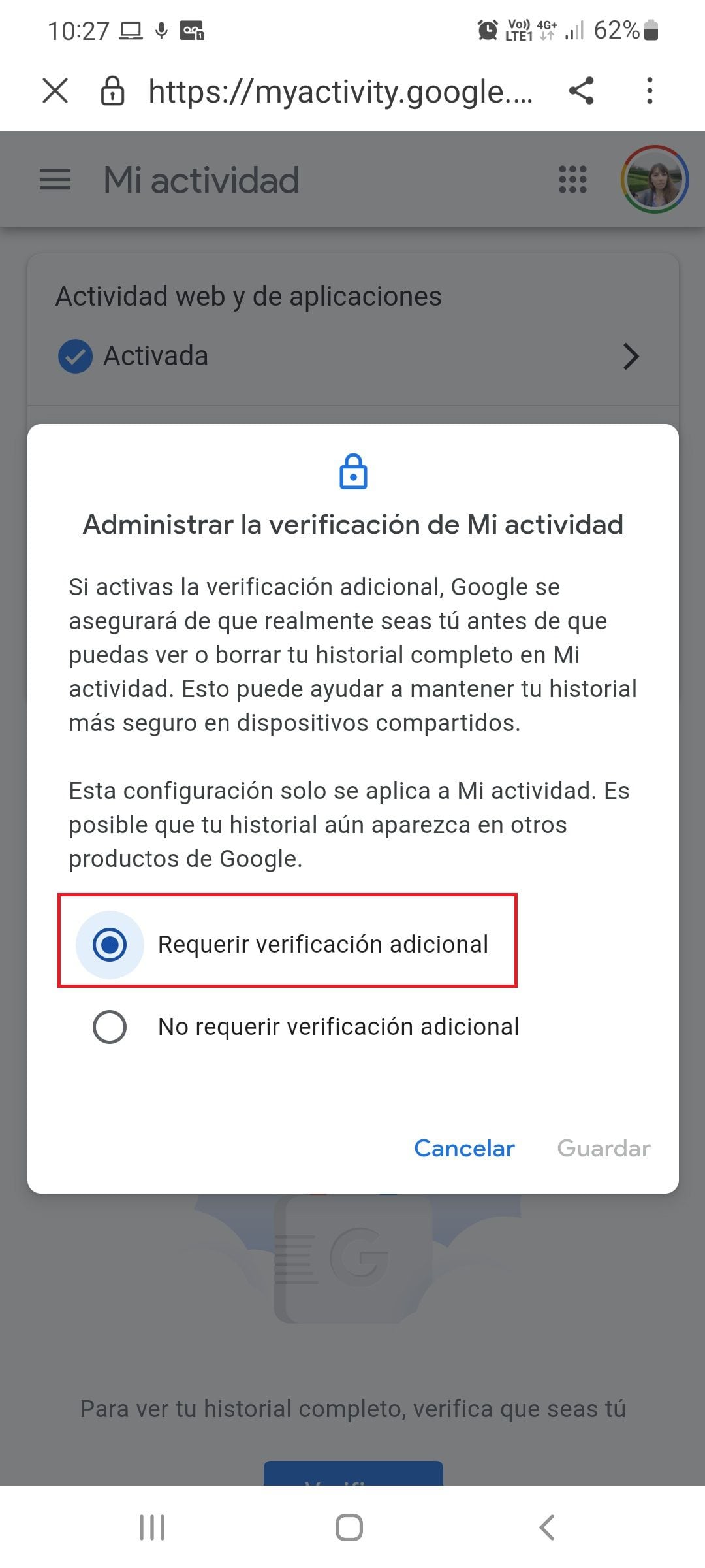 Al ingresar en Mi Actividad, presionando aquí, se elije la opción “Gestionar verificación de mi actividad” y luego, “Requerir verificación adicional”. Allí aparecerá un cartel que solicitará que se ingrese la contraseña de Gmail. De este modo, cada vez que se quiera visualizar el historial de actividades realizadas con la cuenta, el sistema solicitará que se ingrese el password.
