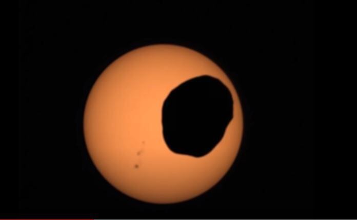 La cámara del rover Perseverance de la NASA (Administración Nacional de Aeronáutica y el Espacio), captó un eclipse solar en Marte. El momento en que Fobos, una de las lunas del planeta rojo, característica por su forma de papa, pasó frente al Sol ha dado la vuelta al mundo.