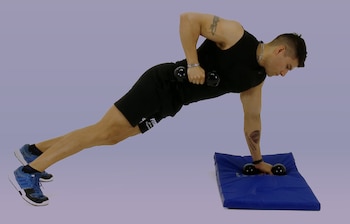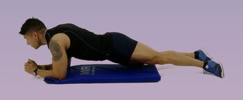-Plancha con rotación: los codos deben estar apoyados, las puntas de pie también y las caderas debe rotar a ambos lados sin subir ni bajar, sino siempre alineados.