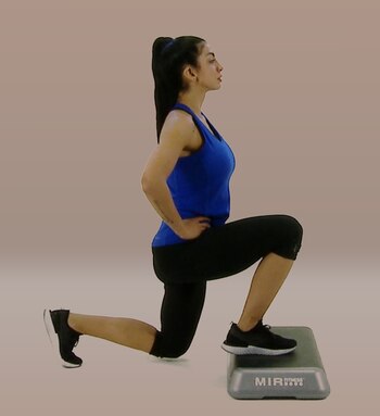 -Estocadas alternadas: en una posición parada, con los pies anchos a la misma altura de los hombros se hace un paso hacia adelante o hacia atrás y se baja hacia abajo no hacia adelante, para que baje la cadera y no la rodilla.