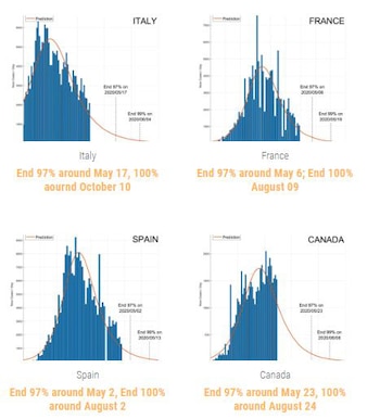 En China, según las estimaciones, la pandemia terminó el 8 de abril, mientras que en algunos de los países más afectados llevará más meses. Tal el caso de España, donde finalizaría el 3 de agosto, Francia el 10 e Italia el 31 del mismo mes.