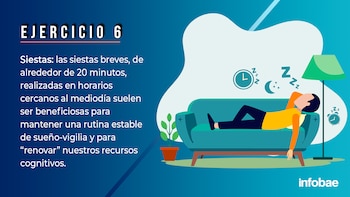 Nuestro sueño no podemos separarlo del resto de nuestros hábitos diarios. Es por ello por lo que hay ciertas cuestiones que debemos tener en cuenta durante nuestro tiempo de vigilia para poder lograr un sueño saludable. En exclusiva para Infobae, Ineco ideó una serie de ejercicios para el bienestar. En el último capítulo del sueño: las acciones diurnas que pueden cambiarnos nuestro descanso nocturno.