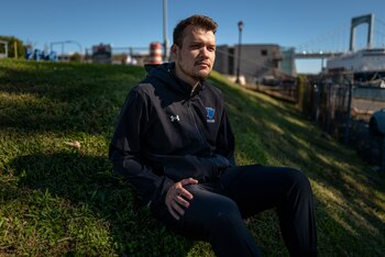 Yonatan Reiter, exsoldado israelí y capitán del equipo de fútbol masculino de la Universidad Yeshiva, en una práctica en Teaneck, Nueva Jersey, el 12 de octubre de 2023. (Jonah Markowitz/The New York Times)