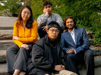 En el sentido de las manecillas del reloj y desde la izquierda, Ruoxi Jia, Tinghao Xie, Prateek Mittal y Yi Zeng, algunos integrantes de un equipo que expuso una nueva falla en los sistemas de inteligencia artificial, en Nueva York, el 16 de octubre de 2023. (Elias Williams/The New York Times)