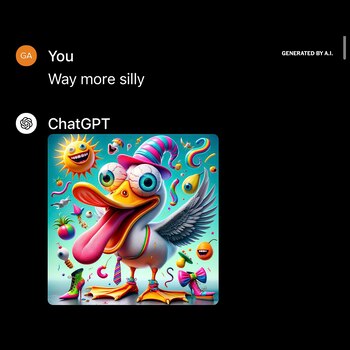 La primera actualización fue bastante modesta: le dio al ganso un colorido gorro de cumpleaños y una amplia sonrisa digna de un personaje de Disney. No obstante, tras la sexta instrucción, tenía un segundo par de globos oculares, portaba patines, lo bañaba una luz fulgurante y estaba rodeado de instrumentos de viento y planetas con anillos.