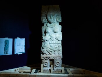 En el Periodo Clásico (200 a 950 d. C.), "lo único que tenemos son figurillas de cerámica de este tamaño", prosiguió en una videollamada, con las manos separadas unos 30 centímetros. "Son hermosas, exquisitas, pero tener algo en piedra sería realmente extraordinario".