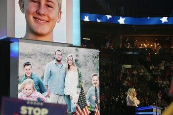 Anne Fundner habla en la segunda noche de la Convención Nacional Republicana en el Fiserv Forum de Milwaukee, Wisconsin, el martes 16 de julio de 2024. (Todd Heisler/The New York Times)