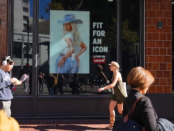 Un anuncio de Levi's con Beyoncé en su escaparate de San Francisco el 30 de septiembre de 2024. (Jim Wilson/The New York Times)