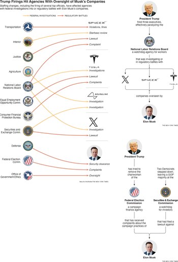 En dos agencias federales de vigilancia de los trabajadores, las acciones de Trump tienen un claro efecto en el imperio empresarial de Musk, así como en innumerables empresas que tienen asuntos ante ellas.