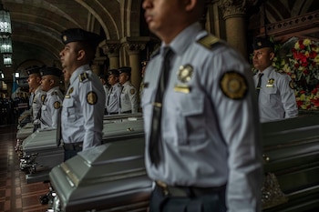 El lunes se celebraron los funerales de ocho agentes. Un noveno y un décimo agente de policía murieron como consecuencia de las operaciones en la prisión, dijo el lunes la Policía Nacional Civil de Guatemala. Otros seis agentes fueron hospitalizados con heridas de bala, dijo Edwin Monroy, portavoz de la policía.