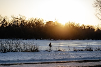 Aunque las temperaturas están por debajo del punto de congelación en muchas partes del país, el agua de estanques, lagos y ríos tiene que convertirse en un bloque de hielo de diez centímetros de grosor para que la mayoría de la gente pueda caminar encima de él con seguridad, según los científicos.