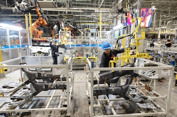 Gran parte de la fuerza económica de China procede de la industria manufacturera. El país ha construido parques industriales enormes, fábricas de vehículos eléctricos y centros de datos, a menudo financiados con préstamos baratos de sus bancos estatales. Las fábricas chinas producen gran parte de los vehículos eléctricos, paneles solares y baterías de litio del mundo. El año pasado, el fabricante de automóviles chino BYD superó a Tesla como mayor productor mundial de vehículos eléctricos.