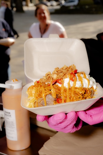 Se podría pensar que la comida que despierta esta ferviente expectación es una de las favoritas del público, como una hamburguesa smash o un taco de birria. Pero el pequeño remolque es el buque insignia deSpudBros, un negocio familiar, fenomenalmente popular, especializado en ese plato tan lumpen, anticuado y poco excitante: la papa rellena.