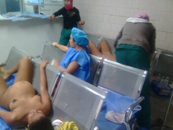 El fin de semana se divulgaron en las redes sociales las fotografías de las mujeres desnudas, en las que incluso se observan sus rostros, en trabajo de parto en las sillas de metal de la sala de espera del hospital.