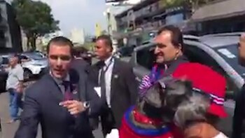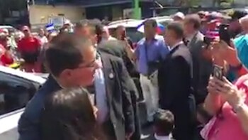 Un video divulgado en las redes sociales muestra a una mujer acercándose al auto oficial de la comitiva venezolana. Al ver que el canciller chavista se tomaba unas fotos con unos niños, le espetó: "A los niños de aquí sí, y en Venezuela se están muriendo los niños".