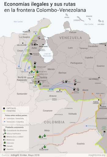 La guerrilla fue una de las primeras en desarrollar el tráfico de cocaína por Venezuela, hacia mercados en Estados Unidos y Europa, a la vez que la gasolina de contrabando venezolana fluía en dirección contraria. Ahora, los espacios que dejó libres las FARC empezaron a ser ocupados por otras organizaciones armadas que buscan el control de la producción, procesamiento y exportación del clorhidrato.