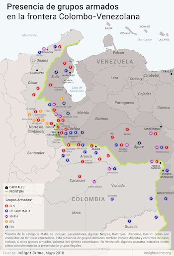 Hoy las principales ciudades fronterizas de Venezuela son el refugio de comandantes guerrilleros del ElN, del EPL y de disidentes de las FARC, además de otras bandas criminales derivadas del paramilitarismo como el Clan del Golfo y la Oficina de Envigado.