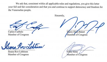 Los legisladores invocan una ley de 2014 para la defensa de los derechos humanos y la sociedad civil en Venezuela, en vigor hasta el 31 de diciembre del año próximo, según la cual el gobierno de Trump puede sancionar a ciudadanos venezolanos involucrados en prácticas de corrupción y en violaciones de derechos humanos.