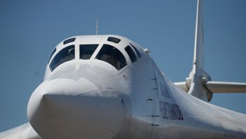 El Tu-160, ("Black Jack", según la OTAN), es capaz de portar doce cohetes de crucero con ojivas nucleares o convencionales y 40 toneladas de bombas, y es el avión de guerra más grande de la historia.