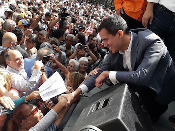 El presidente de la Asamblea Nacional, de mayoría opositora desde 2015, fue el orador principal de "un cabildo abierto" en la sede de la Organización de las Naciones Unidas (ONU) en Caracas. Allí, declaró que la Cámara se apegará a la constitución venezolana y, en este sentido, asumirá "las competencias de la encargaduría de una Presidencia de la República", no sin advertir que el mero decreto no será suficiente para sacar del poder a Maduro, que juró ayer como jefe de Estado hasta 2025.