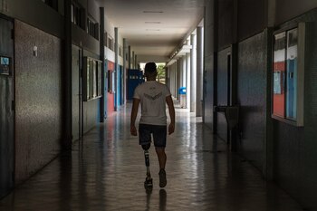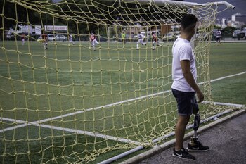 Luis Eduardo González también debió aprender a caminar a sus 20 años luego que un PoliVargas (policía regional) le disparara en la pierna derecha el 17 de julio de 2017. La única opción que tuvo para salvar su vida fue la amputación. Esto le significó no solo aprender a caminar, sino abandonar su sueño de futbolista.
