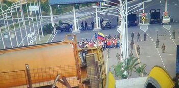 La semana pasada, la vía había sido bloqueada con la cisterna de combustible y dos contenedores. La ayuda humanitaria fue enviada por Estados Unidos a Cúcuta por solicitud de Guaidó, jefe del Parlamento reconocido por medio centenar de países como presidente interino del país petrolero.
