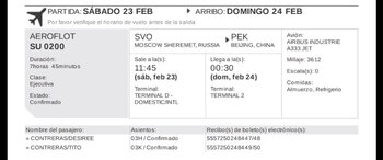 El destino final sería la capital china Beijing, reveló el comunicador, donde llegarían en un vuelo previsto para este domingo 24 de febrero.