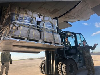 "Estamos sumamente felices de estar aquí y de ayudar en un vuelo de asistencia humanitaria a Sudamérica para suministrar ayuda a los que más lo necesitan", expresó sonriente poco antes de despegar. "De todas las misiones militares, ésta es la más importante, y la que más satisface", dijo parado frente al inmenso avión gris oscuro de cuatro turbinas con la bandera estadounidense dibujada en su cola.
