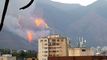 Amplias áreas de bosque fueron devoradas por el fuego en un parque natural donde nacen manantiales que abastecen de agua a Caracas, sumida en una severa escasez agudizada tras el apagón del 7 de marzo que paralizó el país una semana.