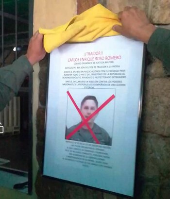 En el caso del primer teniente Franklin Alfredo Caldera Martínez, quien está en el exilio, le hicieron su respectivo afiche de desprecio en la institución armada; más aún, en enero detuvieron a su esposa, la teniente Leidy Roso Contreras como presión hacia el oficial, sin ni siquiera considerar que la joven estaba en período de lactancia.