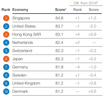 Estados Unidos es menos competitivo de lo que era hace un año y la economía mundial sigue siendo frenada por la baja productividad a pesar de que los bancos centrales han mantenido un acceso fácil al dinero durante una década, informó el Foro Económico Mundial. Hong Kong, Holanda y Suiza completaron los cinco primeros lugares del ranking.