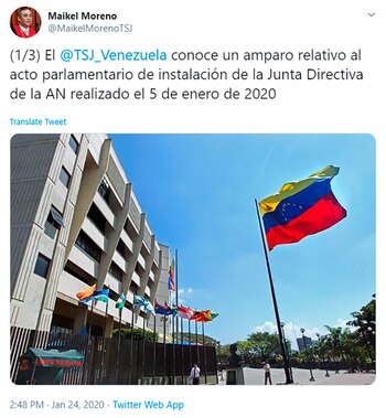 “Las partes involucradas en este amparo ya presentaron información requerida por el TSJ y está siendo objeto de un oportuno análisis jurídico y procedimental para decidir”, afirmó el jurista a través de su cuenta de Twitter.