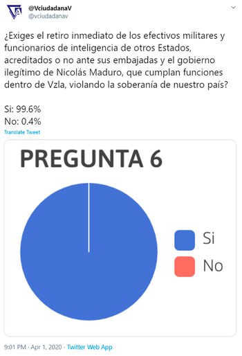 La Organización Vanguardia Ciudadana, que nuclea a venezolanos independientes, lanzó una campaña virtual que busca apoyar la movilización de tropas de la coalición norteamericana hacia Venezuela e hizo un llamado a todos los venezolanos a participar en la consulta ciudadana que está disponible en su plataforma.
