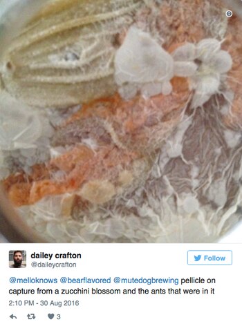 Pero mientras regresaba al departamento, notó una fila de hormigas marchando sobre los pétalos. Crafton, diseñador gráfico y un fornido cervecero, añadió el brote de zucchini en su cerveza sin fermentar. Esperaba que los microorganismos salvajes que vivían en los pétalos produjeran sabores únicos y ácidos.