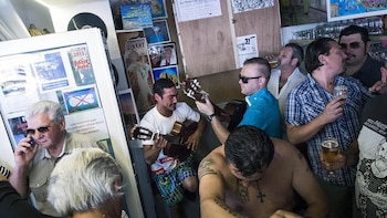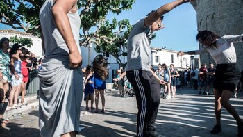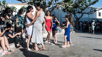Vuelvo al centro donde también continua la música hasta entrada la madrugada. En las calles y las plazas o en los bares que quedan abiertos. Algunas familias llenan mesas de más de quince personas. Siman está en una de ellas, de pie, cantando rumba con mucho sentimiento.